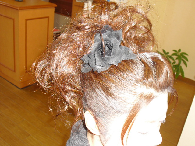 トップにまとめ、黒のバラの飾りを付けさせて頂きました。