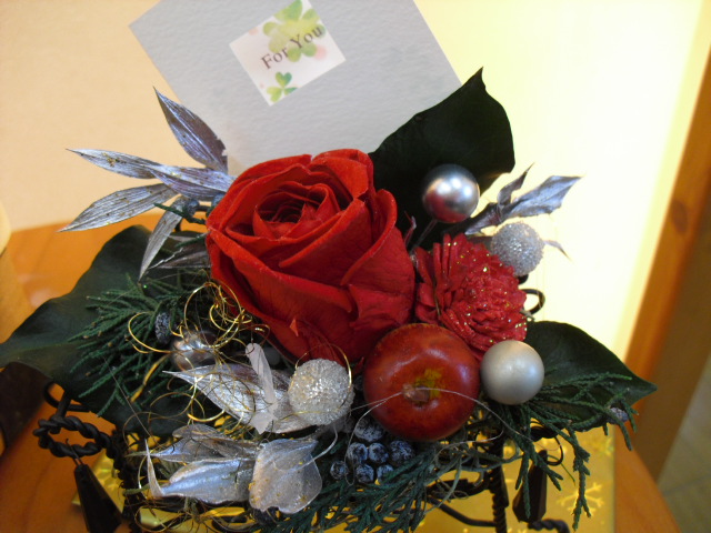 このお花は、お客様がクリスマスバージョンで作っ下さいました