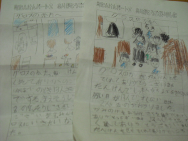 「見学させてくれて有難うございました。そうじをさせてくれてありがとうございます。みんなで又グロスに行きたいです・・・・・・」