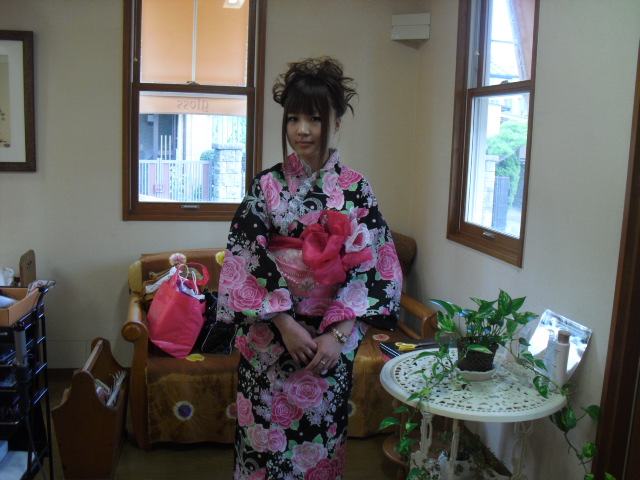 20歳のまいちゃんがお祭りに行くために浴衣とまとめ髪に来られました