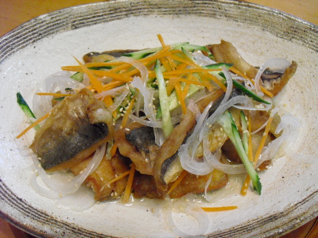 アジを揚げて、南蛮漬けにしました!!