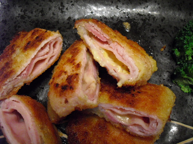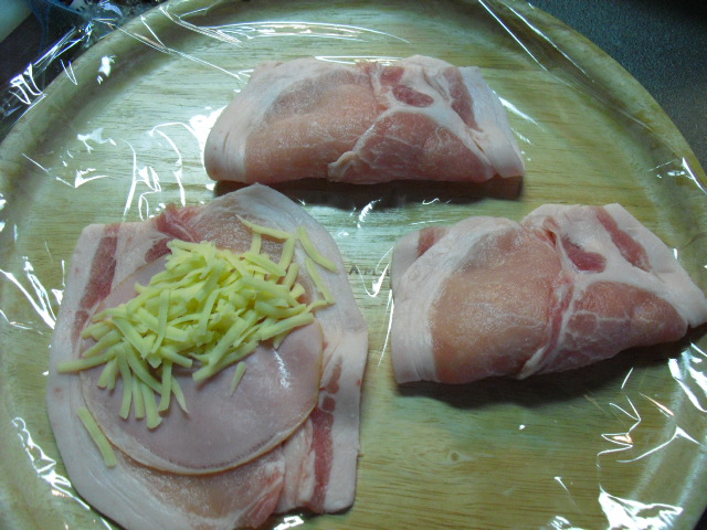 まずは豚のロースの上にハムを置き、その上にチーズを置きます!!!
