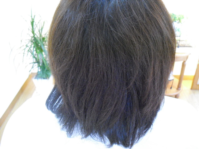 柔らかい髪質ですので、なかなか難しいのですが下をつぼます事で、ボリュームアップに
