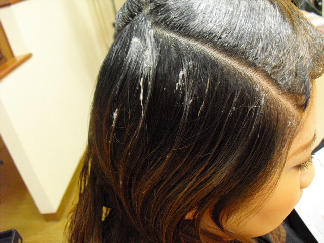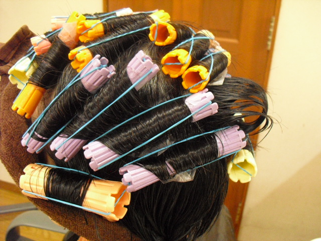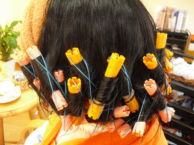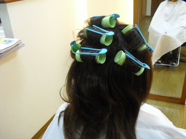 カラー終了後、まとめ髪をするためにトップだけホットカラーを巻きました!!!
