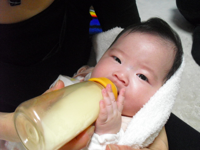2か月だと言うのに、もう自分でミルクを持ってます!!!