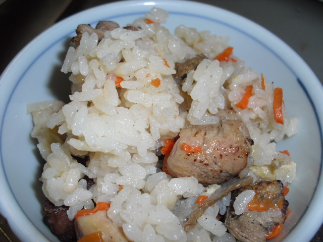 ご飯は。。。宮崎の地鶏を使った炊き込みご飯~~~